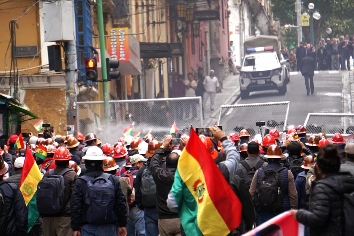 Los hechos: La movilización, encabezada por mineros asalariados y acompañada por maestros y otros sectores afiliados a la COB, intentó ingresar por la fuerza al denominado kilómetro cero, pese a los anillos de seguridad policiales.