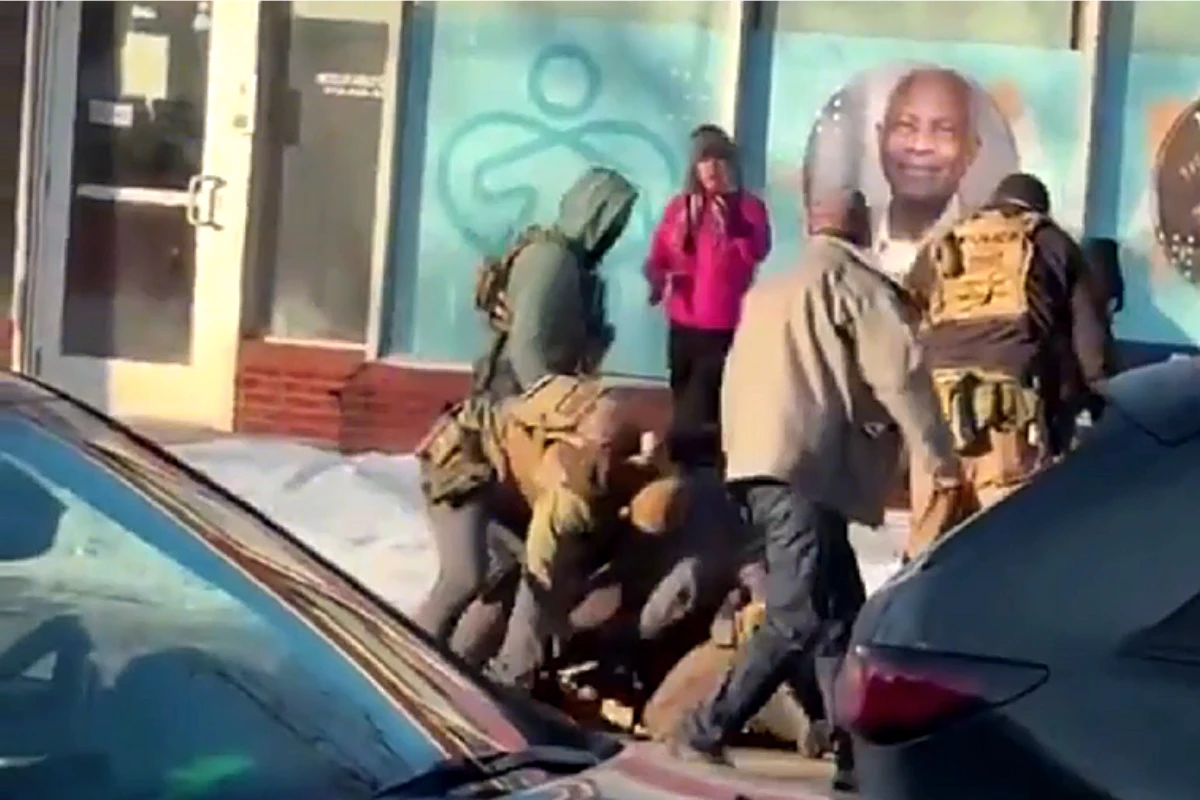 - Un video, filmado desde el interior de una cafetería y pastelería, muestra a los agentes rodeando y derribando a un hombre; un uniformado parece golpearlo varias veces antes de que se escuchen múltiples disparos.