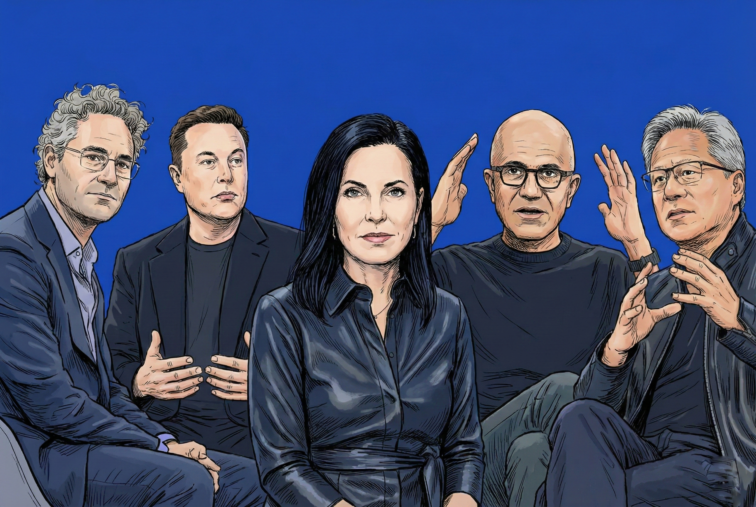 Lo esencial: Alex Karp (Palantir), Elon Musk (Tesla, X, SpaceX, Grok), Dina Powell (Meta), Satya Nadella (Microsoft) y Jensen Huang (Nvidia) fueron entrevistados en el Foro Económico Mundial para discutir el futuro de la inteligencia artificial.