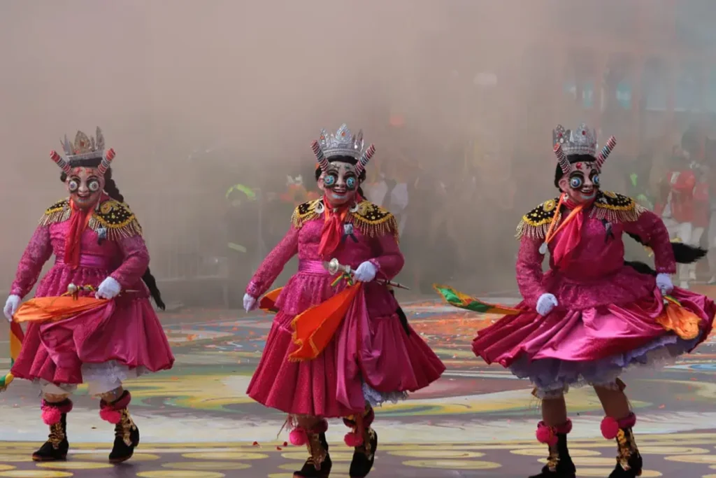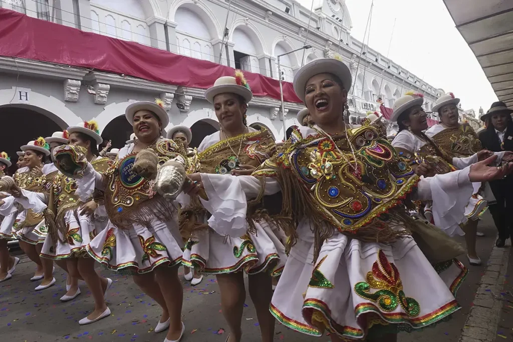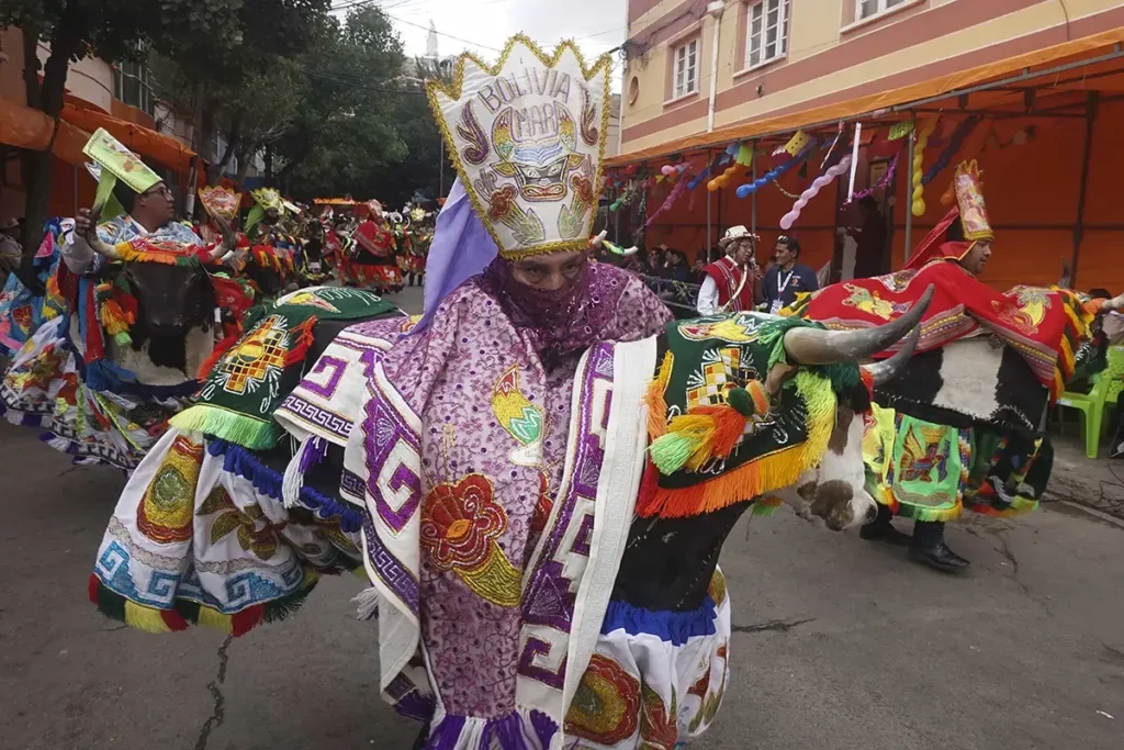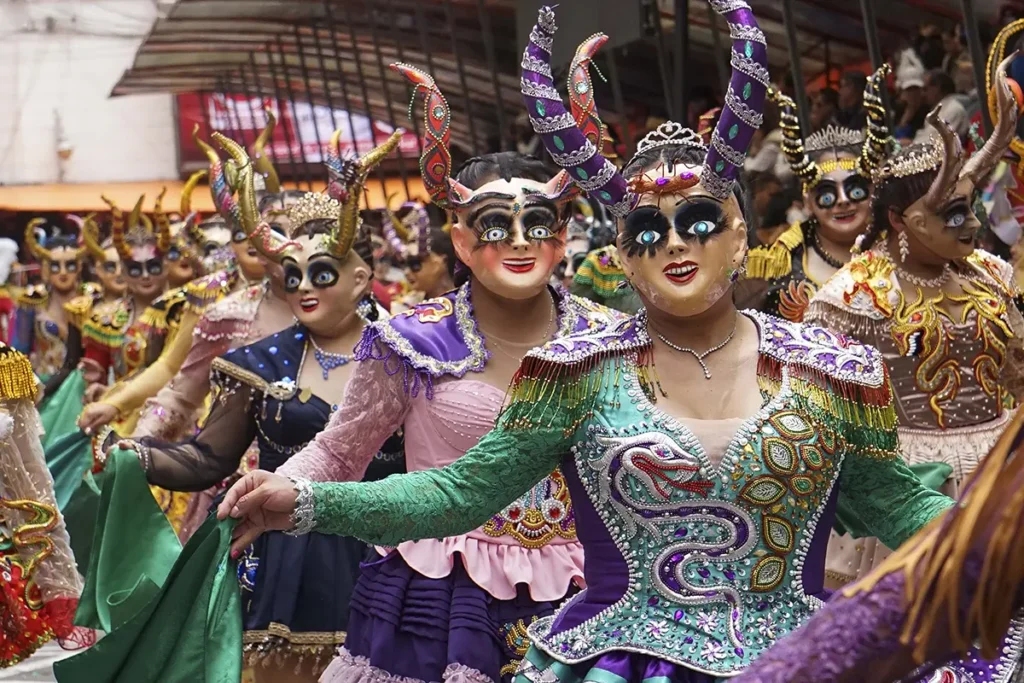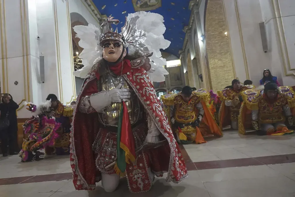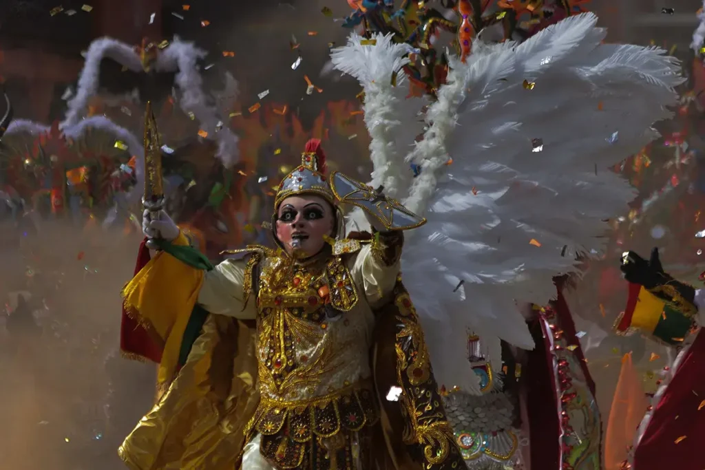 En Oruro, el Carnaval no se mira: se cumple. La ciudad se convierte en ruta de peregrinación y escenario a la vez, con miles de danzarines avanzando entre bronce, máscaras y polvo del altiplano hasta el Santuario del Socavón. La Diablada y el resto de las fraternidades no son solo espectáculo: son un juramento público, una mezcla de fe católica y ritual andino que se paga con horas de baile, cansancio real y, al final, rodillas en el suelo frente a la “Mamita”.