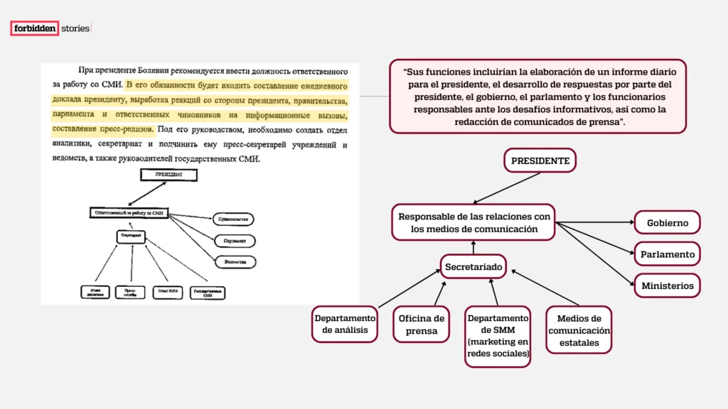 Los hechos: Forbidden Stories detalla que las tareas atribuidas a la red, llamada “la Compañía”, incluyeron un abanico de acciones concretas sobre la política boliviana.