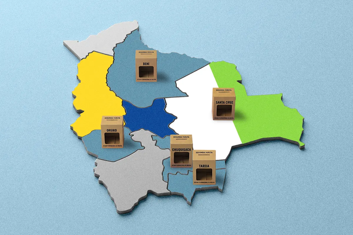 Lo esencial: Cinco departamentos de Bolivia —Santa Cruz, Beni, Oruro, Tarija y Chuquisaca— celebran este domingo la segunda vuelta para elegir gobernadores, completando un mapa político fragmentado donde ninguna fuerza logra imponer hegemonía.